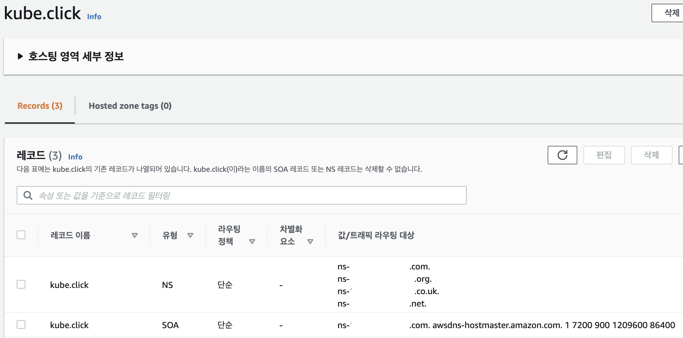 최종 목표는 Public cloud의 managed DNS 서비스를 통해, 특정 도메인(FQDN, 여기서는 본인이 보유 중인 Route53 managed 도메인 중 kube.click 이라는 도메인의 subdomain 을 route53.kube.click 또는 gcloud.kube.click로 만들어서 사용)의 서브도메인이 자동으로 만들어지고, 해당 도메인을 통해 Kubernetes service로 외부에서 접속 가능하도록 구성해 보는 것이다. 즉, kubernetes service(또는 ingress host) 이름을 svc1 이라고 하면 svc1.route53.kube.click 으로 A record 가 생성되고 kubernetes 내에서 svc1 이 삭제되면 이 A record 도 삭제되도록 하면 상당히 간편하게 자동화 된 외부 노출 주소 관리가 가능해질 것이다.